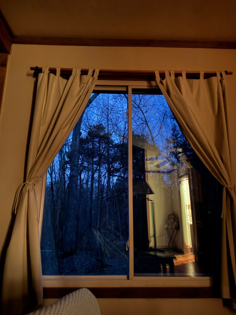I’m sitting in a recliner facing a bay window looking out into the woods. It’s cold outside, so I’m cuddled up under a blanket and sitting in thankfulness for what God has provided me.